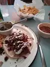 Wow they where great! Large and crispy chunks of gender well prepared yummy morsels. I can't think of a Mexican restaurant where I did not try to Carnitas and this without a doubt was in that top tier presentation in preparation. Also, I ordered the crispy hamburger taco which I normally do not see a hamburger taco on a menu. Had to try so glad I did serious spicy flavors that just kept echoing in your mouth. Ingredients are fresh and tasty it would not hesitate to order this taco again either. Check it out if you can and I don't believe you would be disappointed. The staff was incredibly friendly and helpful with any questions plus there was live authentic music. Not a mariachi band. Remember band and as crazy as it sounds the woman was playing on a pair of cow job bone and with still the teeth in place. Yes that's what I said, a job bone. Terrific experience and I if I lived here I would make this one of my regular taco joints.