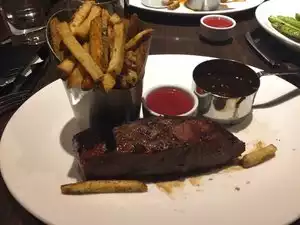 We sat in the bar area, because we were worried that we were a bit too casual with jeans on. Menu is pretty much the same as the main restaurant. Tomahawk was pretty good, but not great. Truffle fries were really good, mushrooms were way too salty. My daughter is gluten free and found it difficult to eat here, with the menu not being clearly marked and staff not particularly knowledgeable. She ended up sticking with a salad to be safe.