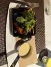 My family went here for lunch on a busy Saturday. The food was pricey but delicious. Unfortunately, the service was slow, but most upsetting was the fact that my purse was stolen from the purse hook under the table in the bar area. I was gone from the table for 3 minutes and within that time someone had snagged it. I reported it to the manager and sure enough, they saw on video footage that a man had indeed stolen it within minutes of my leaving the table. I even checked my air tag that was attached to my wallet and it disappeared right by the nearby underground train where the thieves obviously fled. From reading other reviews I see that other reviewers have had the same experience so that is why I’m trying to alert others to the risk of thievery here. Knowing this,Management should have better security in my opinion. Please be warned if u are going there.
