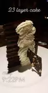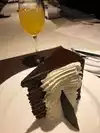The cake was delicious! As it was 23 layers each was thin. Very rich. I’m normally not a whip cream person but I needed it to tame the rich chocolate. Got it to go. Attentive and helpful hostess.