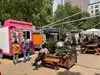 Downtown food truck area with lots of options and a fun atmosphere. I went on a Friday afternoon and it seemed like a lot of people were on a lunch break from work. Lines weren’t too long. I liked the Shawarma house, reasonable prices and you get a beeper while you wait, very efficient. Lots of picnic table seating with umbrellas.
