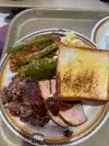 I had read many reviews speaking of how awesome this restaurant is and why it’s a must try when visiting Dallas For me, I felt like I had went back 30+ years when I entered the restaurant. I ordered the smoked ham and beef brisket. You then self serve 2 sides. I chose the mustard potato salad and corn casserole. I was then given a slice of Texas toast My findings were large portions with a deep smoked taste to the ham and brisket. The potato salad and corn casserole were both very tasty. The Texas toast was cold and tough. The BBQ sauce was heavy and sweet. This is a cafeteria style restaurant with self service For lunch and drink it was $21 including small tip