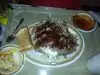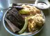 Huge portions of BBQ brisket, on a sandwich or a plate. I really liked the sides too especially the beans and 'slaw. Don't plan on a productive afternoon back at the office.