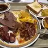 Excellent, satisfying meal! Lots of choices, including sandwiches and potatoes topped with your choice of barbecue, and many sides. Sausage is just spicy enough, and tender.