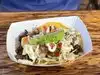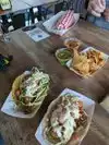 We had a very late lunch at this small restaurant. I had two vegetarian tacos, the portabello mushroom, and the zucchini taco. Both delicious. My hubby had fish & chips which was on the "specials" board where you order. Very reasonably priced food. Would recommend this to anyone. Friendly staff.