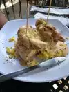 Pretty good atmosphere and the food is great. I’m guessing the flies liked it too because that is my biggest complaint. I ordered the big chicken biscuit dish and it was good, but the chicken was fried hard and was dry so I had to add a lot of honey butter to create a dish with a little more moisture. I will definitely go back and try some other things on the menu. It was really hard to choose from all they had to offer. It all seemed amazing.