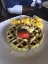 My sister in law suggested this restaurant, after experiencing their food during a catering event at Word of Faith Cathedral. I believe the restaurant is considering opening a location within The restaurant opens at 11am! Please plan to get there early or expect a wait (for good reason). There are multiple posts that say the restaurant does not take reservations. They're located in a shopping strip, so the parking is tight. Food was amazing. Sister in law and I had the shrimp and grits, wife had eggs, grits, and with turkey sausage. My father in law had a veggie burger with steak cut fries. We also had 2 orders of the red velvet waffles and 1 key lime waffle. They have a fried lobster and grits that I need to try on my next trip.The empty plates testified that the food was easy on the palate. Our primary waitress was excellent. Did not catch her name, but the receipt says "Bosskwaw". They have a team approach, which means anyone walking by your table will service your request. There is a reason for the long wait folks!.
