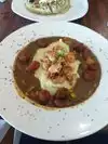 My review is the total experience (ambiance and food) of this restaurant. From the moment my sister and I walked in to this place I didn't get a good vibe. The place just didn't feel clean and it felt cluttered. When we sat at the table the chairs were plastic dinner style chairs, the kind you would expect at a lower budget restaurant. We were taken back when the waiter came and placed plastic cutlery wrapped in cellophane (like for take out) on the table. When my sister mention this the waiter brought some silverware also wrapped in cellophane. The music was so loud we could barely hear the waiter info on the dishes. I was so ready to leave. I watched this Chef/owner of this restaurant on "Chopped" and I know he likes to combine unusual flavors/ingredients....I like that! So I got the "fried" salmon on top of spinach and hash browns covered with a cream sauce. The salmon was dry, which I should have expect since it was fried....the flavor was good. Then I had corn in a Gouda and jalapeno cream sauce which came to the table in a styrofoam bowl with the sauce running down the sides.....awwwh. My sister had the Gumbo (with barely any seafood) and was surprise to find it had "mixed vegetable" (string beans and carrots) in it. Both of these dishes were priced at $18.00 and looked really good. The food was served on plastic plates with plastic drinking glasses. I see all the great reviews, so I guess I came in with high expectations which is why I was so disappointed.