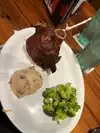 Our server was in training so everything was a little bit slow and had to be repeated but we tried to be patient. My husband and my friend both had prime rib and I ordered the Osso Bucco which was more like a roast pig‘s knuckle. It took a long time to come but they told us it was because I ordered the Osso Bucco and it takes a long time to heat through. It was very tasty but very rich. My husband and my friend both enjoyed the prime rib which was on special since it was Thursday night. However we did wait almost an hour for our food which is a long time when you’re hungry!