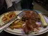 Food good and good atmosphere. Our evening was spoilt by the waiter, who kept trying to snatch food from our table whilst we were still eating. On 3 occasions, a waiter sneaked up behind me and tried to snatch away my side salad without the courtesy of even asking whether I had finished my salad. On the 3rd occasion that he sneaked up and his arm appeared from behind mee to snatch my side salad, I gently placed my arm on his in an attempt to stop my salad from being removed without my permission. At this point, our waiter went into a complete sulk, was quite unpleasant, and deliberately avoided us. The effect of his rather childish behaviour soured what had previously been a very enjoyable experience