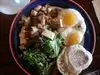 A very popular spot for lunch /brunch so be sure to arrive early or you may need to wait ....but the wait is worth it. For brunch we had Mediterrian crispy dough served with 2 eggs(any style you want), fresh tomatoes sliced, harissa and pickled vegetables on the side. Burekas ( puff pastry filled with feta, olives and labneh) served with Israeli salad and two eggs any style. Everything was delicious and all the food being served to other btables looked good as well. Our waitress couldn't have been more efficient or friendlier.