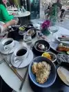 Gorgeous setting. We probably had the best table in the restaurant - on the terrace on the rail. We got very lucky. Food was spectacular. Service was not fantastic. I think our server was new. We heard other servers explaining the menu and providing recommendations. Our drinks came out after our first plates (which was not ideal).