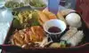 Stayed at nearby Bahia hotel for short meeting and ordered a takeout lunch. Reasonably priced $13 for large portions. Ordered the vegetarian and tofu noodles which came with miso soup, small salad, large vegetable and tofu noodles with large side of rice. Enough food for lunch and dinner. Not particularly flavorful noodles or vegetables.