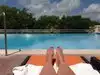 Lounged on the sun-drenched porch with puppy... delicious food and caring staff who brought a snack and water for my dog - very kind! Chicken sandwich was fresh and yummy... definitely not a frozen bird.