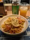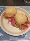 The ‘buns’ are not bao, they're large sliders (2 per order); the seared shrimp features a somewhat rubbery patty formed from shrimp - could use some flavorful sauce. Ginger scallion noodle bowl is not very gingery, not complemented well by cold raw carrots, cucumbers and seaweed. Very crowded/loud (not great ambiance).
