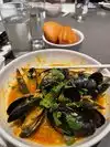 Had reservations for 3 at the counter. I was worried about being seated split across the counter because it's a huge counter, but it was just fine. Was worried about counter seating being comfortable, but it was okay. By the end of service one leg was falling asleep, but it was fine after I stood up for a bit. The restrooms are located outside the restaurant down an adjacent hallway from the mall entrance. Okay, on to the food! First, we ordered some very tasty and generous cocktails including sake, Toki Highball (suntory toki whisky, handcut highball ice, club soda), and Lunar Mai Tai (nordic rum blend, averna amaro, pineapple, mandarin, orange, orgeat, lime). We started with the Pork Belly Buns. I cannot imagine that these could be any better. The tastiest bites! Also got the special curry mussels special (not on the menu). Wow! Delicious curry with tender mussels, served with fried buns. The broth had the perfect amount of heat with the buns offering the perfect accompaniment to dip in the broth. In our party, we had the Garlic Chicken Ramen, Smoked Pork Ramen, and Mushroom Ramen. The portions were very generous all the way around. This was good and bad because I did want to try the cheesecake soft serve on that day's dessert menu, but I just couldn't eat another bite! I just have to remember that there will be another visit here on my next trip! Really enjoyable, delicious, and satisfying dinner!