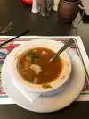 Stopped by and had a glass of wine, minestrone soup and garlic bread. The garlic bread was the best but a good solid minestrone