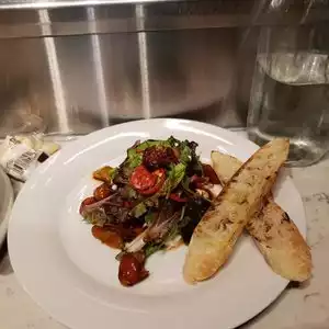 I can't say anything but positive things about their food. It is a bit pricey, but vetty very delicious. I started with a half dozen raw clams, about $14. This is a rare offering, so I was very happy to order them. They were child and delicious. Even the cocktail sauce was top notch. Followed with the seafood chowder. It was a delicate broth that was delicately seasoned, with perfect salinity. I added black pepper, because I love that flavor with chowder. I wish there was a bit more fish, in the soup... but I loved that they didn't thicken it. It was really perfect. Lastly, I ordered the burrata salad. The waitress informed me that the pancetta, which is listed on the menu, is a mistake. I was a bit sad... but after eating it, I'm glad they didn't add it. It was wonderfully balanced in flavor, and a good portion. I wished for one more slice of baguette. I suffered. Lol. My final bill was $56 with 2 glasses of wine. I would have given them 5 stars, but the dining room and bar ate too tight, and a bit uncomfortable. I was at first seated at the window bar, by myself. No one came after they gave me water... So I requested to move to the bar which they accommodated immediately. The chairs are those small metal square stools... which are always uncomfortable... and the bar is a bit shallow for looking legs. I wish the was a bit more room. I would definitely recommend this restaurant, and would go back, and sit in the beautiful patio.
