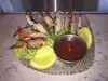 Prawns, Green Fried Tomatoes, Mushrooms, Mac n Cheese, Gumbo & Red Snapper....it was all Dee-Lish !! Good portions, not a huge Menu, but was hard to choose, because it all sound sooo good !! The Outside seating in a Chilly Nite was cool...as there were heaters at every table. Oh yeah, we had Raw Oysters too !! Yumm !!