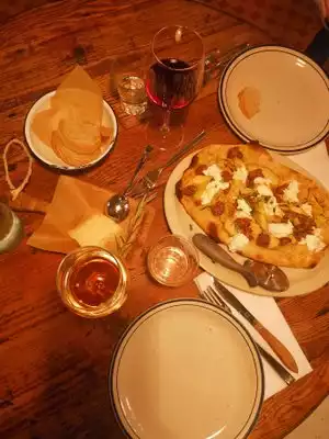 Great Pinsa and rustic vibe - the strawberry gelato with balsamic was delicious. We were tired from a long flight but we had a great meal.