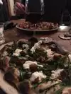 Pre-theater dinner. the place got jammed - make a reservation. A charming old building with lots of old knick-knacks. Service is very friendly and professional. Beautiful cheese counter and lots of house-made charcuterie, which looked amazing and nearby diners raved about. The shaved zucchini salad was delicious, but a tiny portion. The pinseras are large, might be too big for one person as we didn't finish both of ours. I had the evening special, which had cheese and artichokes and calabrian peppers, which were fiery. My daughter had the Casal Bertone pinsera and it was our favorite. Ample wine list and small dessert menu - we enjoyed the espresso sorbet. Can't wait to return!