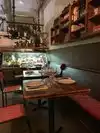 My husband and I got here and found our online reservation had not been input so we elected to sit at the bar which was better than the noisy, crowded tables. We shared a great Rapette salad--beets, greens, goat cheese and pistachios. However, when first served, it lacked beets and pistachios! The bartender had the problem corrected. We also shared a nice Pignetto pinsa--flatbread with mozzarella, tomato sauce, anchovies and oregano. Our half bottle of Verminto wine was a tad sharpe. The bartender was friendly and attentive. Enjoyable place with funky decor that is obviously very popular.