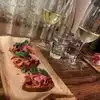 Charming decor and service. The five of us shared Delicious Italian small plates, wonderful cheeses and very good Pinsa. We will definitely return. Good place for vegetarians too. The desert pinsa with pistachio was amazing.