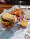 Most of the time there is a line out of the door of this tiny establishment but it moves quickly and is totally worth it. Plant based burgers and wonderful prepared fries and tater tots. Big time yum. Don't look for excellent seating or ambiance because it isn't there. Take your food to go and eat in your car and you will be planning for your very next visit again.