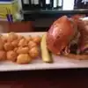 I have been wanting to try out this restaurant for a long time and finally was able to do so.. The 1st thing I noticed was that the happy hour menu has mozzarella stuffed meatballs for just 5.00 so I ordered them... When the appetizer came out I was surprised to see the portion size was huge.. The sauce stood out and was delicious and went very well with the delicious meatballs and it was accompanied by delicious garlic bread...I then had the burger and I love that you can choose to have the burger with fries, tater tots or salad.. So let's break down the burger Bun-- I love a brioche bun Meat-high quality and properly cooked Toppings--you only pay 75 cents per topping.. I chose bacon and hummus, yes I said hummus lol and it was delicious...I must admit that the superstar at this meal was the stuffed meatballs and that delicious sauce.. It was truly incredible