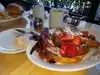 This restaurant has two tables inside and the rest outside on a terrace. We ordered Salads; they were delicious.Except,small flies kept flying into our food, which not only made it annoying,and a desire to leave. The Men's Room smelled foul, there was water on the floor and disgusting. I asked the Manager, Brice. If he was inspected recently. He said two months ago and they were received 80% ? I do NOT recommend this restaurant