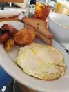 We went there with a friend who made the reservations since we were visiting from out of town. It was really nice dining outside on a beautiful sunny day under an awning. There were a lot of breakfast items, but we each decided to get a 5 egg omelet. It was huge and we were not able to eat it all. The toast was sourdough and the jam appeared to be homemade. Coffee was very good and the prices for the breakfast items were reasonable.