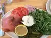 I have not been here for donkey's years, so why not brunch with a friend? Spoiler alert ... they are very busy on Sunday brunch. Our reservation helped us get seated quickly - or is it that we seemed to be the only people over 50? This is difficult to review. The place was very crowded, very loud - too loud - but diners were having a good time. I think because of the crowd, the service was very slow from start to finish. Wine took much too long to arrive. Bagels were not delivered with the salmon plate. The women next to us did not use one of their take-home boxes and kindly shared, so I did not have to wait for that, too. The server, however, was very nice. The food - excellent. I recommend the smoked salmon platter - a good portion of smoked salmon. A large bagel (when it came) Ask to get it double toasted, it was just heated. Lots of capers, olives, arugula, and enough cream cheese. I had wanted the fried chicken with biscuits and gravy - go early if you want that, it was sold out. Apparently they only make so many biscuits. And the menu ... if you are averse to qr codes, go prepared knowing what you want - no hard copy menus. And I recommend they refresh or removed the dried flowers on the table.
