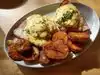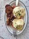 Perfect brunch spot, highly recommend. I got the Benedict Burger, and I had some of the salmon dish. Everything was delicious.