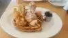 The atmosphere was great. We considered it pricey for breakfast BUT the food was good. My husband got the french toast with fresh strawberries, my friends got the chocolate dipped waffle with fresh strawberries and cream and the chicken waffle sandwich which they said were really good. My brother and I got omelettes which were good but overpriced. One negative, there was always a line for the restrooms (one seaters). Things might move a little faster there if they were uni-sex as the woman's line is always longer.