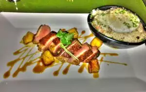 Recently came here on a business trip and was not disappointed! I was apprehensive abt eating alone but had a great experience. I started with a tuna roll which had a surprising amount of wasabi in it. If overpowered the roll at times but overall was great. For dinner I had the duck, duck, duck which was fantastic. The duck was cooked perfectly! The evening was topped off with fantastic service from Joshua who gave great wine recommendations. Definitely will be back!