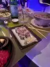 Wonderful sushi in an even more amazing space. Large room with wonderful colour changing booths. The sushi plates were large and tasty.