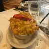 The steak was amazing and side dishes so yummy. I had a 6 oz filet Mignon and bacon wrapped scallops. The meat was seasoned so well that you didn’t even need any sauce. We ordered the lobster Mac and cheese. Delicious. Wish they cut up the lobster into smaller pieces so it was mixed with the cheese better. Wine selections also good. Had the Decoy Cabernet.
