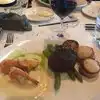 Extremely top notch on atmosphere, service and food! Hors d'oeuvre (scallops with apricot jam, lamb, goat cheese bruschetta), main course contained options with a salad. Sea bass, lobster tail, filet mignon and T-bone steak with a side of green beans and twice baked cheese potatoes were excellently seasoned and cooked to perfection! Desserts were cheesecakes and chocolate mouses! Wonderful experience and can't wait to return!
