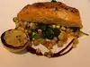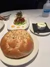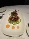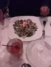 Stopped in for a light dinner prior to a theatre engagement, lightly char seared Ahi Tuna steak, perfectly seared Med Rare, served over a fresh greens salad with a Raspberry Lime vinaigrette and grilled asparagus as a side. My significant other had the chopped house salad w/shrimp ! Service was fast and food was on the table within 25 mins from order ! Kudos to the staff and servers ! Bon Appetite’