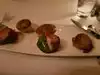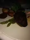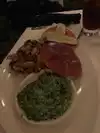 Food was delicious, we had the prosciutto wrapped mozzarella cheese as an appetizer. Then the lobster bisque soup, we had the mixed grill with Filet Mignon, 2 shrimp, and two bacon wrapped scallops, for dessert we had the chocolate soufflé for dessert. Everything was great. Steak cooked to perfection. We were greeted by Gina, Leonard, and Jessie. Our server was Matt and he was amazing. The entire staff was great. We were celebrating our anniversary.