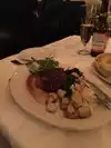 Our group of 20 had our own room for a private dinner. May have finished off the “Stag Leap” Cab on hand that night..... it was a steak and filet dinner and the general feeling after a dinner like that was a great reminder of what it is like to have a good piece of beef. Sides of green beans and potatoes were fine. As expected, service was perfect!