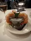 Booked a relatively early table for one, which meant that the early-door drinkers were still in the bar on the left as you go in. Unfortunately, this bar is not insulated from the rest of the restaurant and the noise level bordered on the intolerable - one certainly had to shout at the waitress to get the orders across. The braying subsided as the meal went on, but it was not a good opening to the Morton’s experience. I had the lobster cocktail to start with ( $25 ) which arrived suspiciously quickly. This was a little sweet for my taste, but OK. My main course was an 8oz Filet Mignon ( $56 ), which was absolutely superb. No fries available, so I had the Lyonaise potato sharing plate - the minimum quantity available ( $15 ). I asked with whom I was supposed to share and was told ‘ yourself ‘ ! A bit wasteful, as I had to leave half. Very nice dish though. I elected to have only American wine - a Butterblock Chardonnay ( $16 ) with the first course and two different Pinot Noirs ( $18 & $19 ) with the main. Thes were 6oz glasses, translating as around 175ml each, so about two thirds of a bottle in total. With no pud or coffee, there was only tax ( $13.22 ) and the dreaded NY service charge to consider....I gave $25 which is about $15%. I left the place at 8.00pm having parted with $187.22 or around £150. In conclusion, the food was pretty good – 5 stars for the main and 4 for the starter - but certainly not worth that much and the racket in the background was not acceptable, hence only 3 stars.