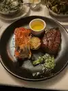 We had the same for main course but the steak differently steaked and they managed to do that. The starter was fantastic. Quick and prompt service. The only disappointment was the mashed potatoes in some creamy thing. That was tasteless. I walked away from there uncomfortable full of great steak and seafood. $240 + gratitude is a bit too much for two persons with a beer and soft drink.