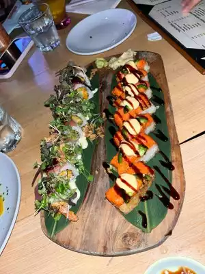 Excellent sushi and BIG portions. Creative menu but all the basics are there too. Quick friendly service. Tables may be a tad close and outdoor patio needs some decorating love. But who cares?! Food is excellent.