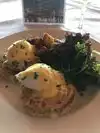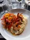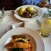 We had brunch here today. I ordered the Salmon and grits and my husband had the Seafood Louie salad. We also ordered Lobster Bisque. My salmon and grits had a little kick to it and was very good. My husbands salad was also very good. The soup had a great flavor.