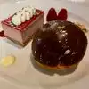 The ship interior is certainly beautiful but it felt as though that was relied on too much. The service was sporadic. Three times our table had to request or remind servers that we were waiting for or were without items.the servers were sweet but I think lacked training. The food; I have to admit to being stunned to hear it was a 4 diamond restaurant! The food no way reflected that. It was, in truth, incredibly average and very overpriced. My starter was quite literally a bowl of cos leaves! My main was made for me as I am vegan. It was fine. There was no pudding for me and nor was o offered an alternative. It was such fun watching all the other guests enjoying their desserts !!!!