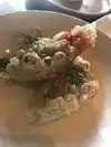 I had the imperial rolls for starter, which was very good. The entire was a bit disappointing. The Lamb was too thick so was undercooked and didn't taste very good. Also, lots of grossly bits inside of it. The garlic noodles were a bit too oily, mushrooms good. The presentation was really pretty and the atmosphere is great. However, the food is so massively overpriced that I have to give it a low rating