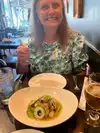 Ate her for dinner in a party of seven. Shared entrees including shaking beef, braised oxtail, steamed whole fish. Accompanied by a couple of bottles of rose. As appetizers we had green fried rice shrimp with a spicy mayo, charred green beans, and the blue crab salad. All delicious.