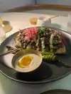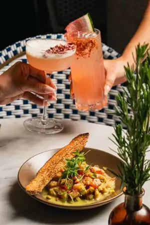I had seen Motek on insta and thought let’s give it a go as I’m local. Located in the Brickell City Centre on the top floor, its pie was appealed to me. The decor is lovely. Happy Hour was a great way to experience Motek without breaking the bank. I sat at the bar. The stools are not great for bigger people. Miami is not always chunky butt friendly. The stool was ok but not comfy comfy. The team behind the bar were friendly and asked if I had any allergies. I ordered a non alcoholic beer $4, Babaganoush, chicken shawarma and halloumi. Everything was well presented and delicious apart from the chicken shawarma. The smell and taste had a curry sauce vibe and the pickled onion (I think it was) was awful. I spoke with the team and said it was not good and shawarma should not have a sauce like this in. I was prepared to pay for it $7 and ordered a latke instead. I was pleased to say they removed the cost of the shawarma. The service was attentive and friendly. The overall cost of what I had was reasonable at $25 with tip included. The only aspect I would say you need to be mindful of across Miami and not just here is the addition of tip even though service has already been included - check your receipt. I’d return for happy hour but I’d not want to pay full price for what I had. Maybe the sizes would be bigger, but I’m ok with what I had.