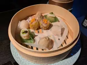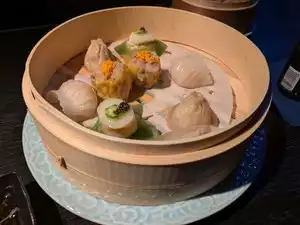 We went here for the dim sum and it was worth the trip from our hotel. The pork buns stole the show, we ordered a second helping. I ordered the marinated cucumbers based on a TA review and I ordered a second helping of those as well! The dragon ball jasmine tea was a great accompaniment to the meal. At the recommendation of our waiter, we ordered the entrees and shared them as they were big enough for our party of four. There isn’t a large selection of dessert. We tried the Bamboo Green Forest which could be compared to a frozen key lime pie. The atmosphere here is an experience on its own. The decor was fun, we were lucky enough to get a booth with a privacy curtain. The bathrooms were well maintained. The wait staff were extremely attentive. Tip - If you want to order the Peking Duck, reserve it while making your reservation. It sells out quickly, along with the pork belly.